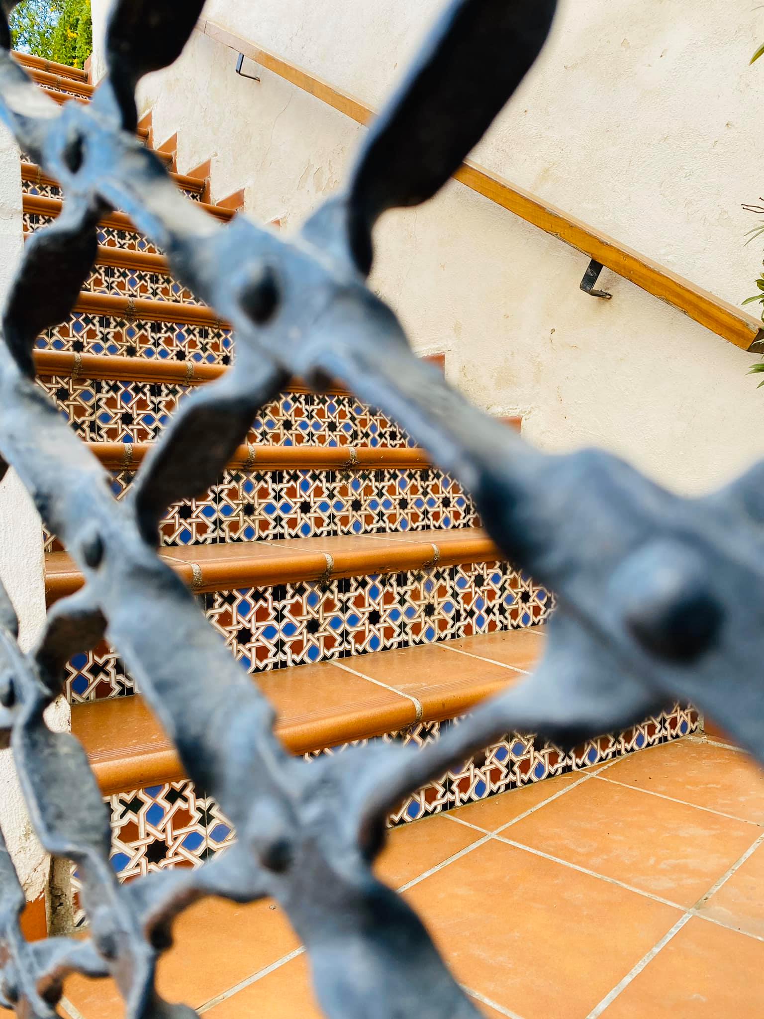 Tiled stairs leading up to the restaurant in Granada