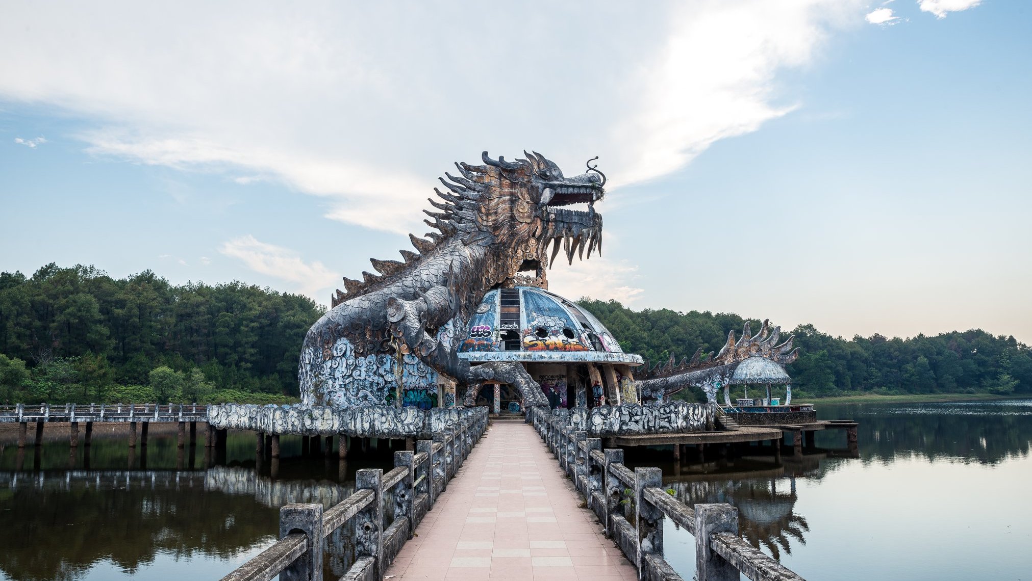 In the park we found the abandoned ticket booth, aquarium, slides, wave pool and kids play area. Many say it’s eerie, the perfect setting for a Stephen King book… I can’t say anything like that crossed my mind, I was simply intrigued by the humongous dragon sitting in the centre of the lake! I’m not sure why abandoned places are so intriguing, but I am glad we went!